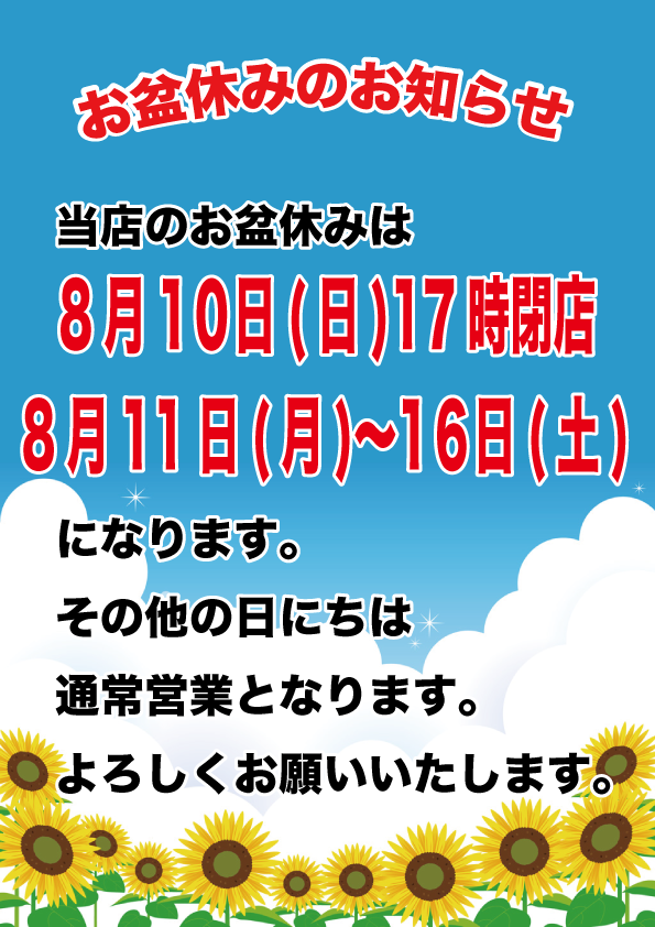 お盆期間中のお休みの案内